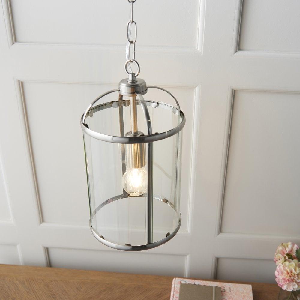 HO Nikkel felületű elegáns henger alakú, üveges függeszték lámpa