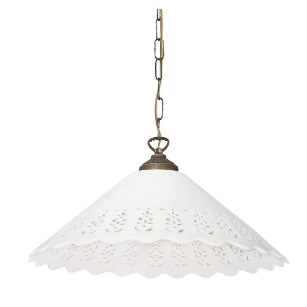 Olaszországban készült rusztikus függeszték lámpa, 40 cm-es kerámia ernyővel.
