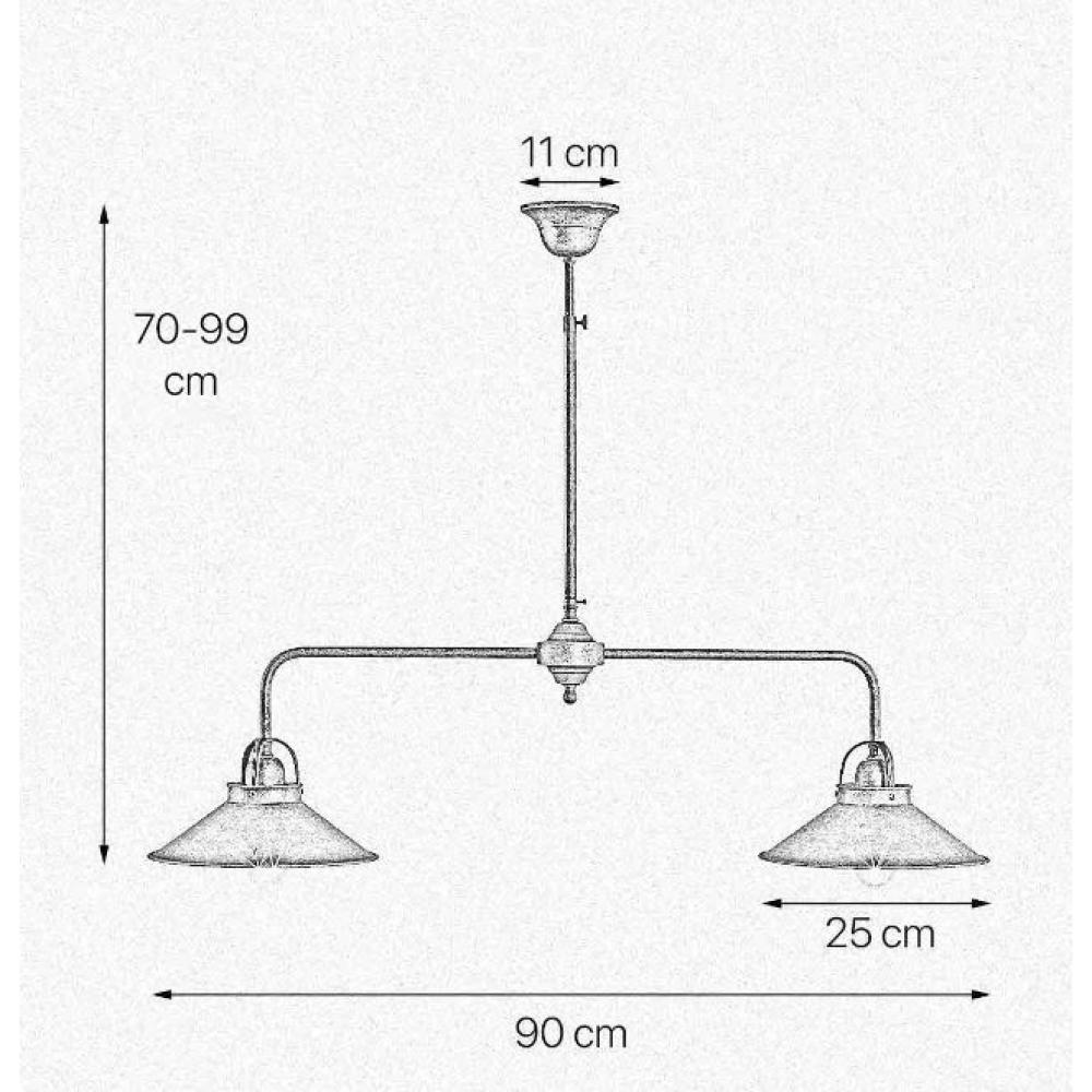 GH Antikolt réz, rusztikus két izzós függeszték, asztal fölé, 90 cm szélesség