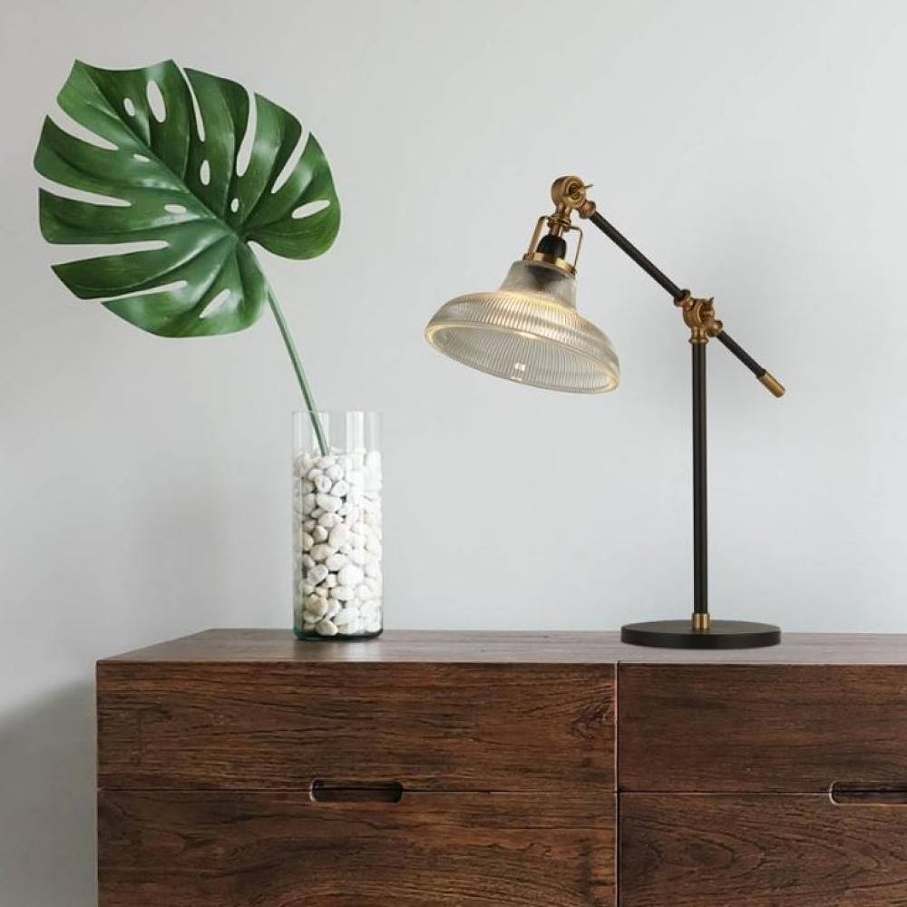 A fekete és sárgaréz fémből, valamint üvegből készült asztali lámpa egy csipetnyi kifinomultságot visz minden térbe.