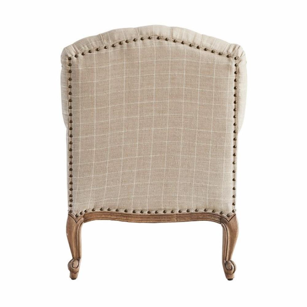 LB Vidéki, elegáns, cottage stilusú kockás len fotel, tűzött háttámlával, mangófa lábakkal / 72,5x81x 95,5 cm