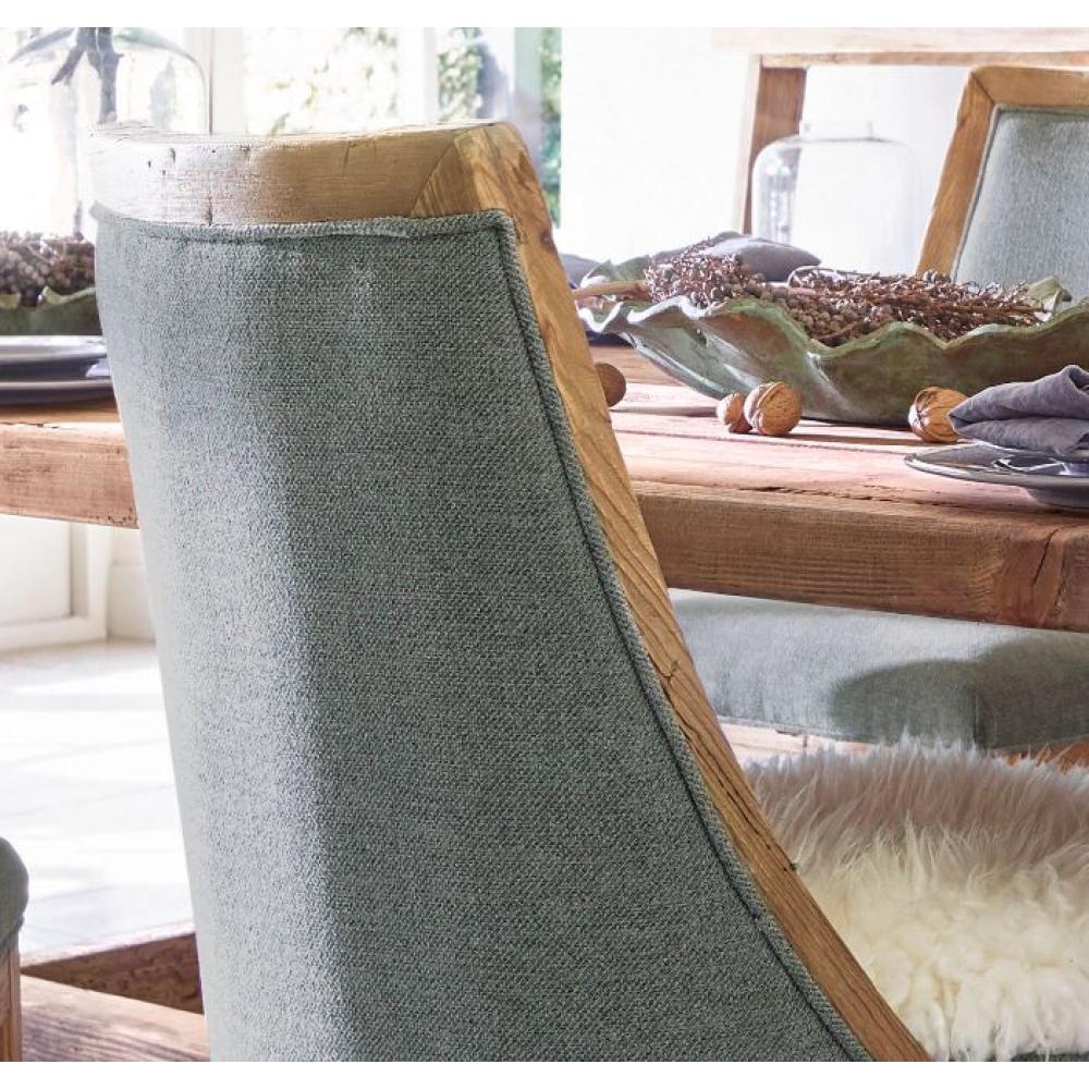 Az újrahasznosított fenyőből készült masszív szerkezet lenyűgöző felületeket tartalmaz, amelyeket a finom felületkezelés még jobban kiemel. Az exkluzív karaktert a régi bontott fa hibáiból adódó egyenetlenségek hangsúlyozzák, amelyek tökéletes kontrasztot alkotnak a bársony jellegű kárpit eleganciájával. A háttámla íves formája ülés közben is biztosítja a helyes testtartást.