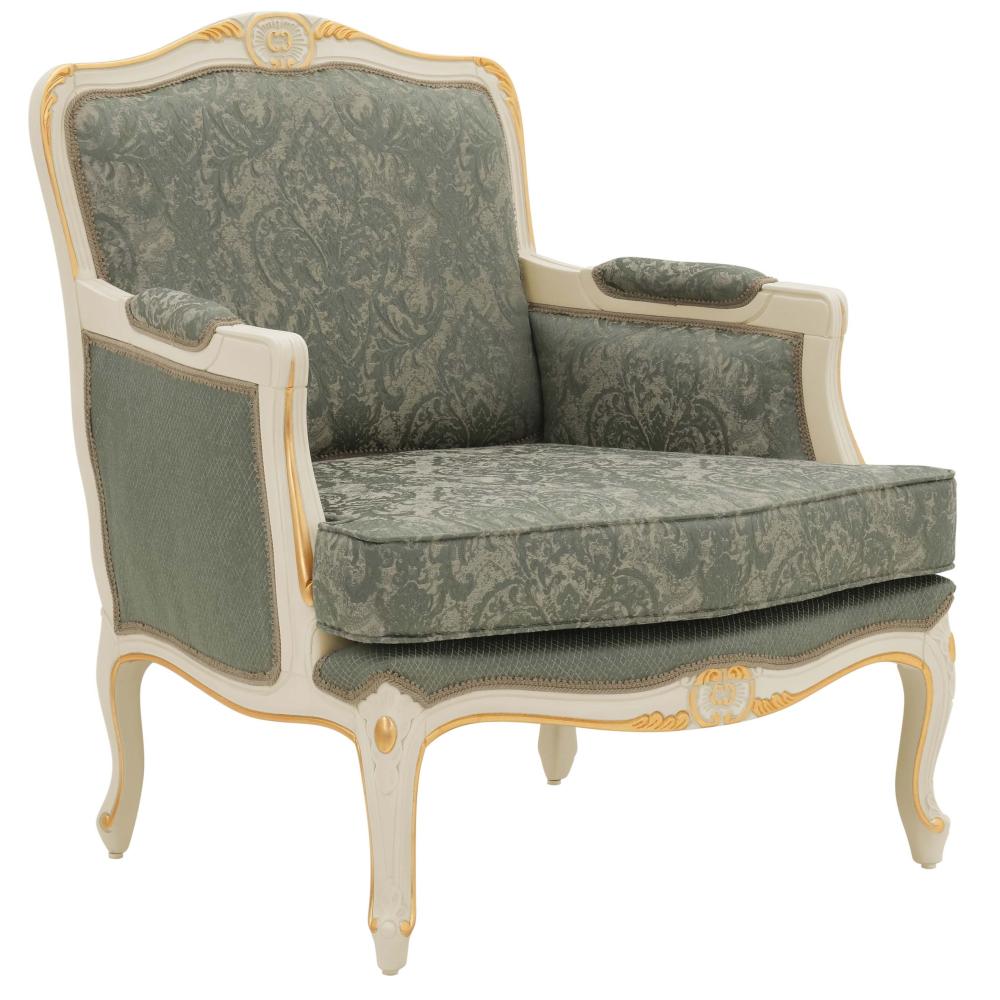 Klasszikus vonalvezetése és nagyszerű kialakítása révén a bútor bármilyen feslőkategóriás projektben, kastély, villa felújításban könnyedén megjelenhet. Kényelmes, klasszikus stílusú fotel bükkfa szerkezettel. A fotel hevederrel és kiváló minőségű habbal van kárpitozva, kényelmes párnázott üléspárnával rendelkezik. Ajánljuk elegáns villákba, kastélyba, felső kategóriás polgári szalonokba, nappaliba. A bútor Olaszországban készül, felső kategóriás, kézzel készült termék!