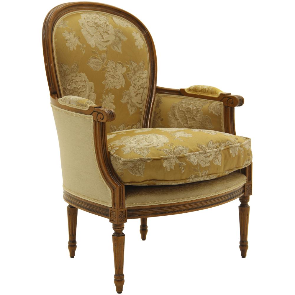 Elegáns, XVI. Lajos stílusú fotel, bükkfa szerkezettel, jellegzetes lekerekített háttámlával. Kerek íves formáival és alacsony háttámlájával a kanapé harmonikusan illeszkedik minden klasszikus belső térbe. A színvilág nyugalmat és eleganciát áraszt, míg az ívelt vonalak kényelmes és hívogató légkört teremtenek. Ajánljuk elegáns villákba, kastélyba, felső kategóriás polgári szalonokba, nappaliba. Olvasófotelként is kiváló. A bútor Olaszországban készül, felső kategóriás, kézzel készült termék!