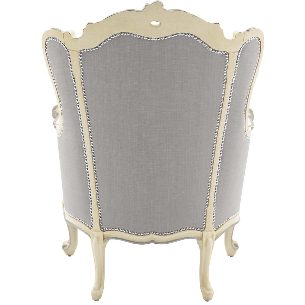Barokk stílusú fotel, kanyargós vonalakkal és bükkfa szerkezettel. Az ülés hevederrel, négy rugóval és kiváló minőségű habbal van párnázva. A kárpit testre szabható szegecsekkel, fonással, különböző élvarrásokkal rendelhető. Ajánljuk elegáns villákba, kastélyba, felső kategóriás polgári szalonokba, nappaliba vagy akár olvasófotelként is kiváló. A bútor Olaszországban készül, felső kategóriás, kézzel készült termék!