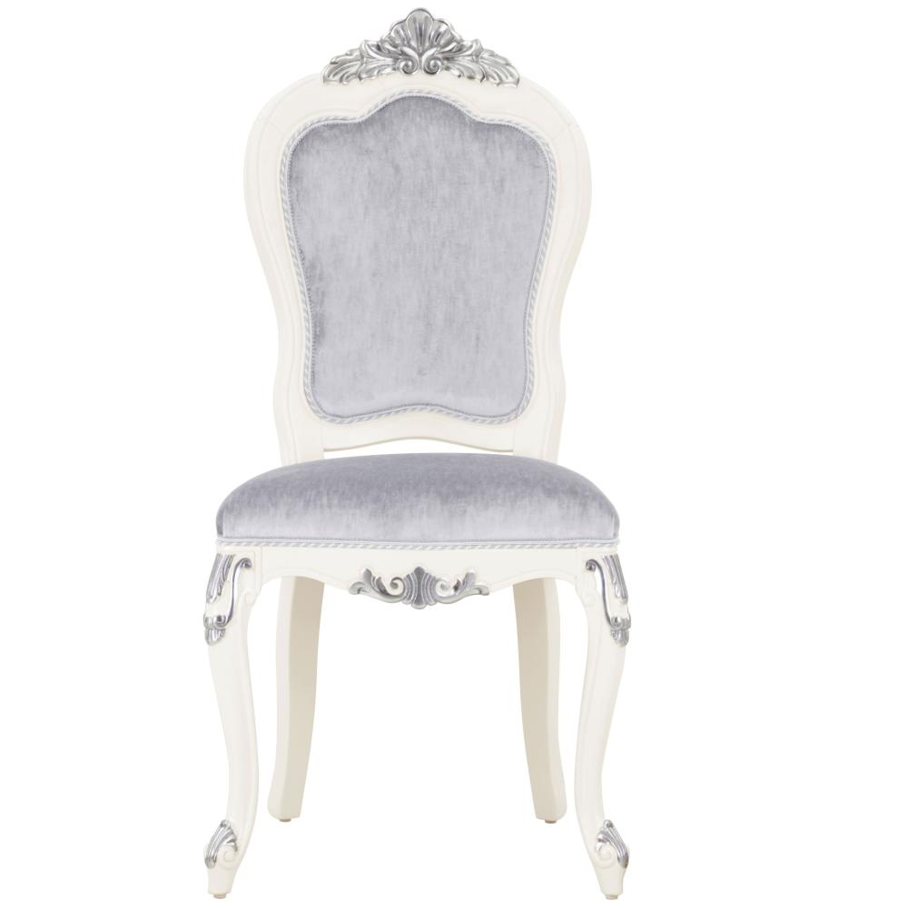 Kényelmes klasszikus barokk stílusú étkezőszék bükkfa szerkezettel. A fotel ülőpárnája hevederezett rugózott és kiváló minőségű habbal párnázott. A kárpit testre szabható szegecsekkel, fonással vagy varrattal. Ajánljuk elegáns villákba, kastélyba, felső kategóriás polgári szalonokba, akár étkezőbe is. A bútor Olaszországban készül, felső kategóriás, kézzel készült termék!