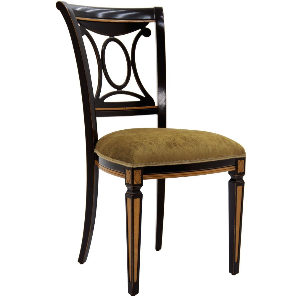 Kényelmes, klasszikus stílusú étkezőszék bükkfa szerkezettel. A termék egyedülálló jellemzője a hátlap, amely nem párnázott, de különösen bonyolult fa design díszítéssel rendelkezik. A szék ülőpárnája hevederezett és kiváló minőségű habbal párnázott. A kárpit testre szabható szegecsekkel, fonással vagy varrattal. Ajánljuk elegáns villákba, kastélyba, felső kategóriás polgári szalonokba, vagy akár étkezőbe is kiváló. A bútor Olaszországban készül, felső kategóriás, kézzel készült termék!