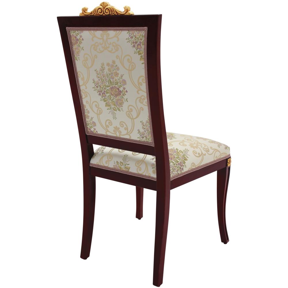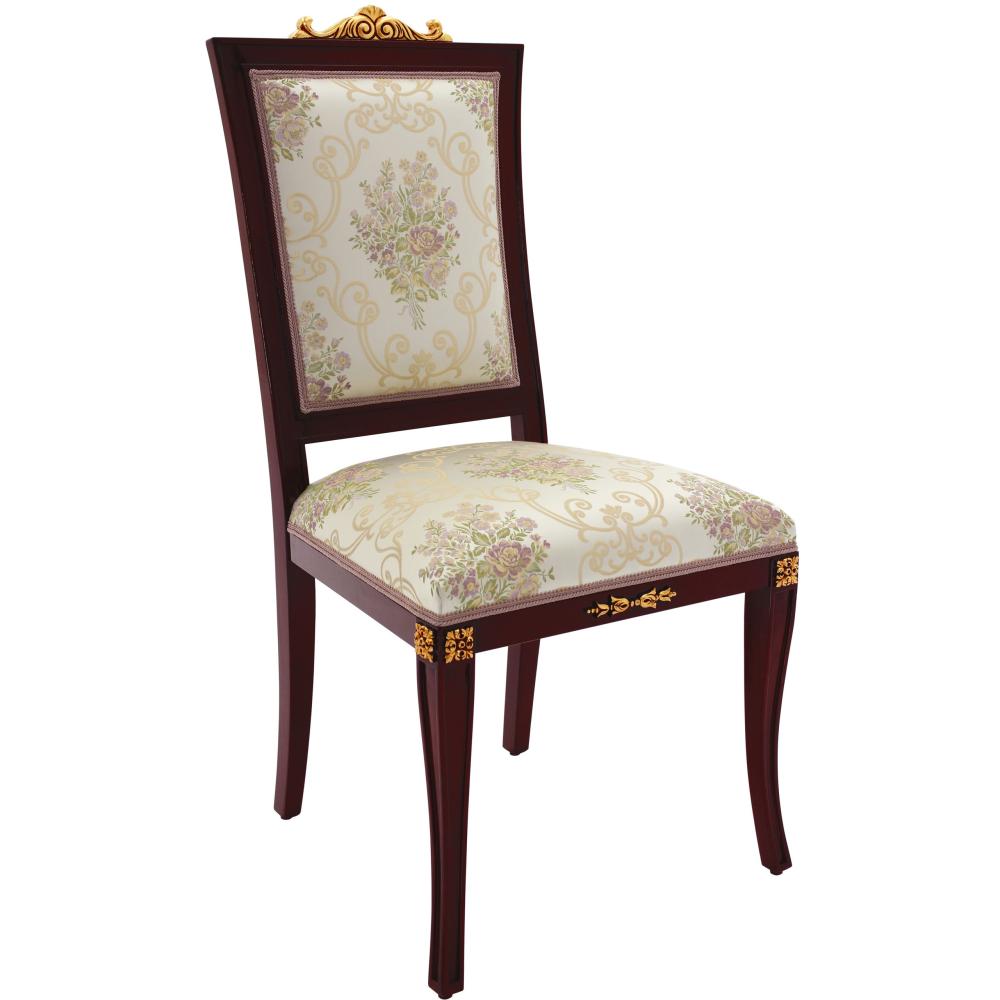 Viktoriásus stílusú szék, különleges szögletes formájú kárpitozott háttámlával. A szék értékes, kézzel faragott részletekkel rendelkezik, amelyek arany vagy ezüst lakkozással fokozhatók. Ajánljuk nemcsak elegáns villákba, kastélyokba, felső kategóriás polgári szalonokba, hanem mindennapos használatra étkezőbe, nappaliba.