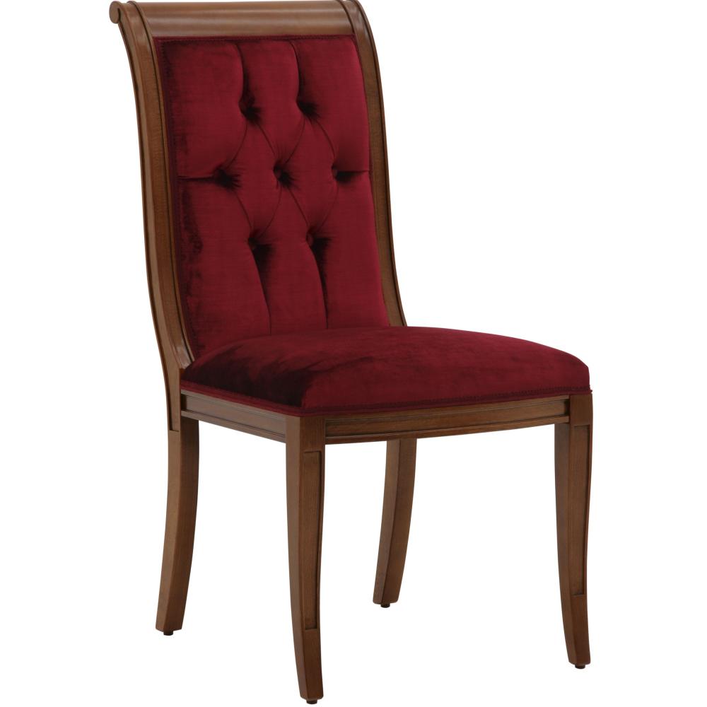 Klasszikus olasz szék, erős keményfa szerkezettel, mely szilárdságot és tartósságot biztosít. A háttámla és a lábak, értékes kézzel faragott részletekkel rendelkeznek, amelyek arany vagy ezüst lakkozással fokozhatók. Az ülőfelülete hevederrel és kiváló minőségű habbal van párnázva. A kárpitozott háttámla mély gombokkal testre szabható. A kárpitozás továbbá testre szabható még szegecsekkel és fonással. Ajánljuk elegáns villákba, kastélyba, felső kategóriás polgári szalonokba, nappaliba vagy akár étkezőbe is kiváló. A bútor Olaszországban készül, felső kategóriás, kézzel készült termék!