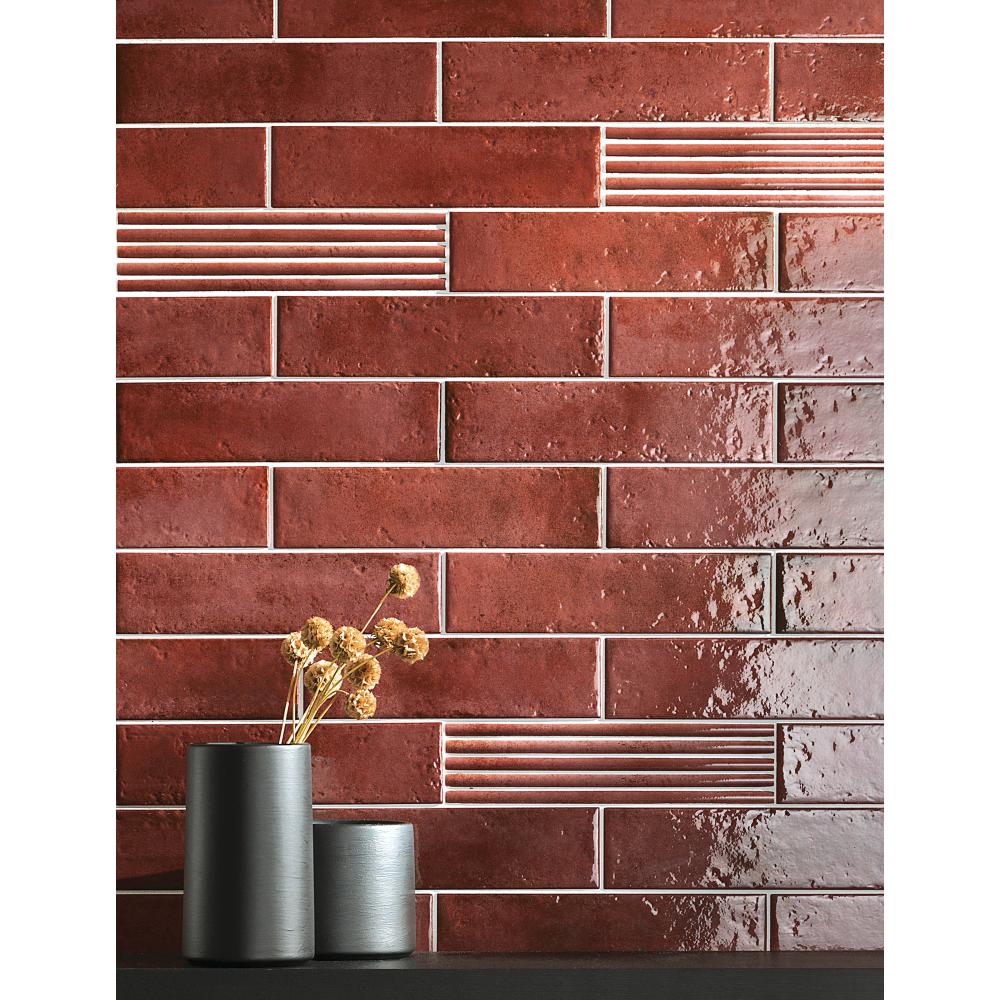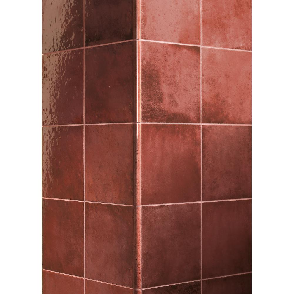 SC Kézzel készített hatású, hullámos, antikolt piros rusztikus fényes fali csempe / 16,5x16,5 cm