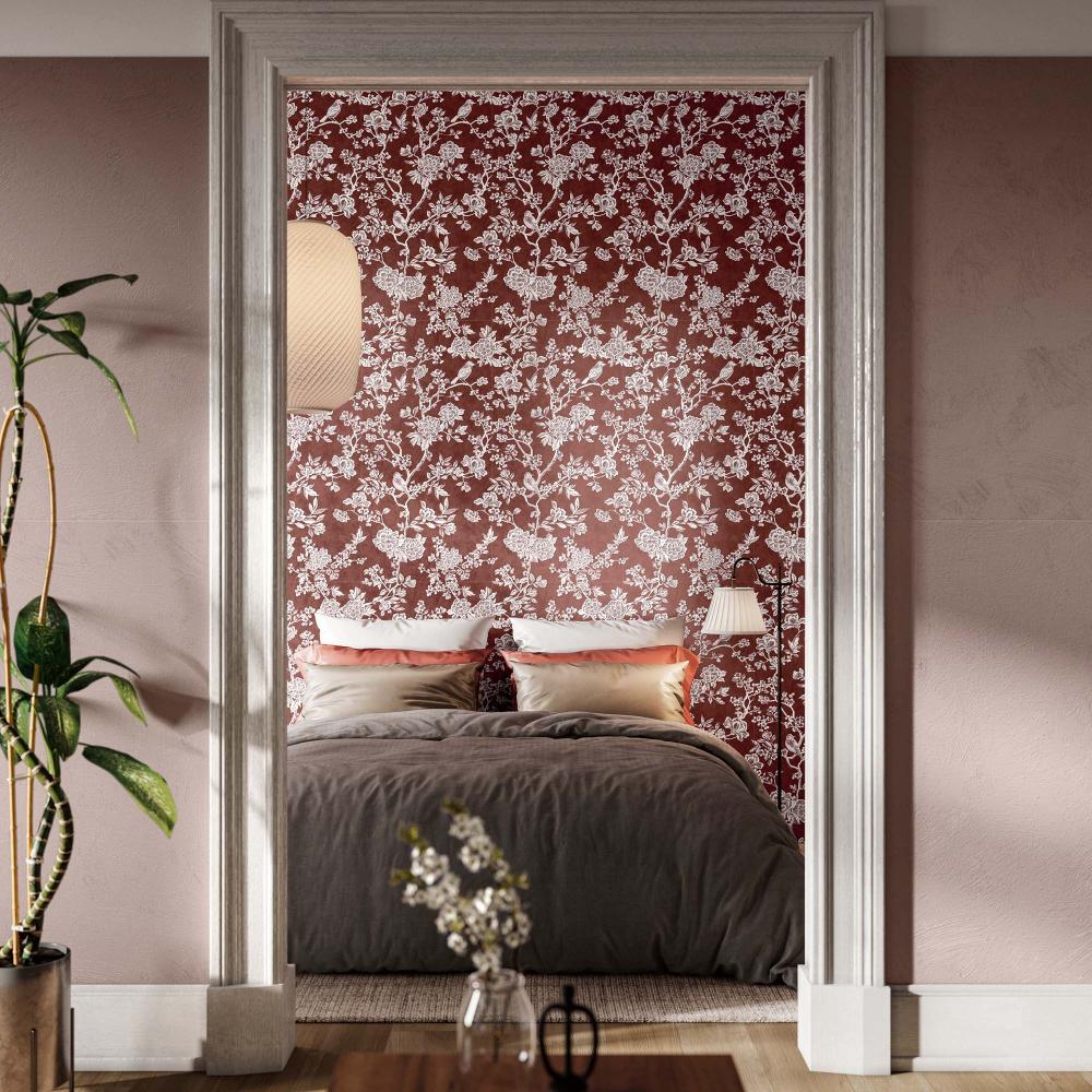 CI Elegáns, bordó, tapéta hatású madaras, virágos fali csempe, 60x120 cm