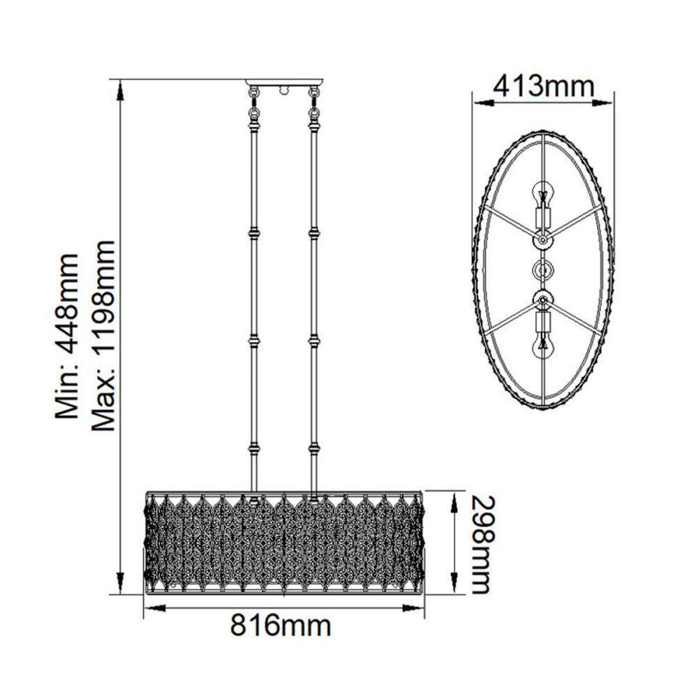 A lámpa vászonernyőket és elegánsan kidolgozott üveg alsó diffúzorokat tartalmaz.