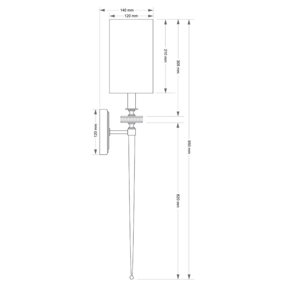 A lámpatest és a fali rögzítő alap matt vagy szatén arany, réz vagy nikkel színű fémből készült, amely már önmagában is luxus hatást kölcsönöz. A hosszú, vékony kar fokozza az eleganciát és a vertikális vonalak modern megjelenését.