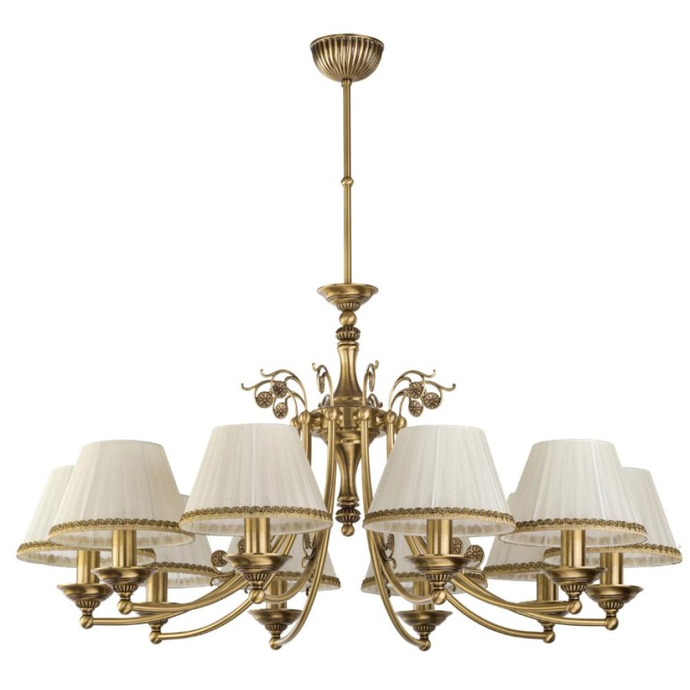 HOKU Tízizzós, patinázott réz szerkezetű, elegáns, luxus csillár klasszikus stílusban, választható ernyővel, opciós fémszínnel /átm.83 cm x 70 cm
