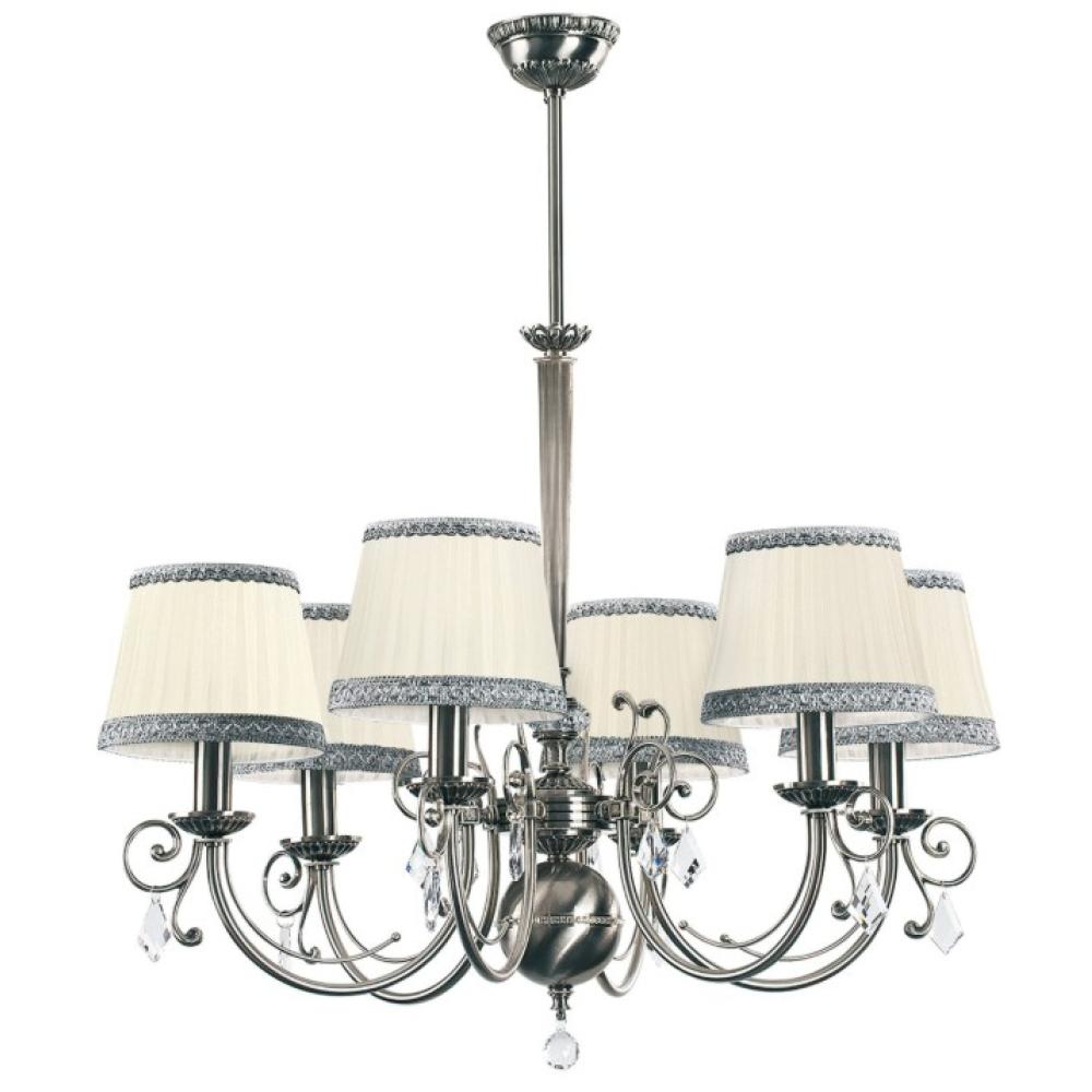 HOKU Antik nikkel szerkezetű, kristályokkal díszített hatizzós csillár klasszikus stílusban, választható ernyővel, opciós fémszínnel /átm.73 cm x 70 cm