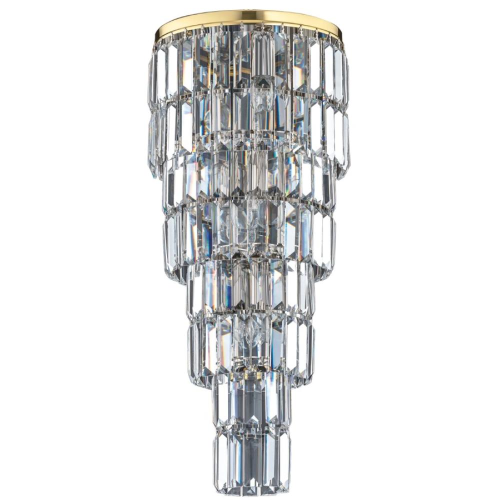 HOKU Fényes arany szerkezetű mennyezeti lámpa, csillár luxus enteriőrbe, minőségi kritályokkal dekorálva / 25 cm átm. x 60 cm magas