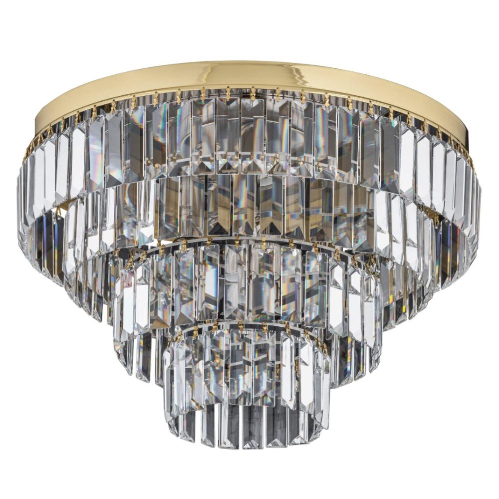 HOKU Fényes arany szerkezetű mennyezeti lámpa alacsony belmagassághoz, luxus enteriőrbe, minőségi kritályokkal dekorálva / 45 cm átm. x 30 cm magas