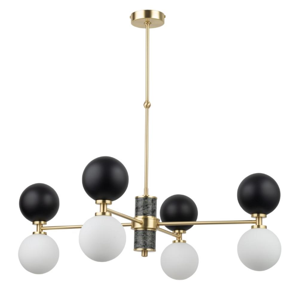 HOKU Artdeco, glamour stílusú matt arany csillár, fehér-fekete, gömb alakú üvegbúra és választható márvány /76cm átm., 70 cm magas