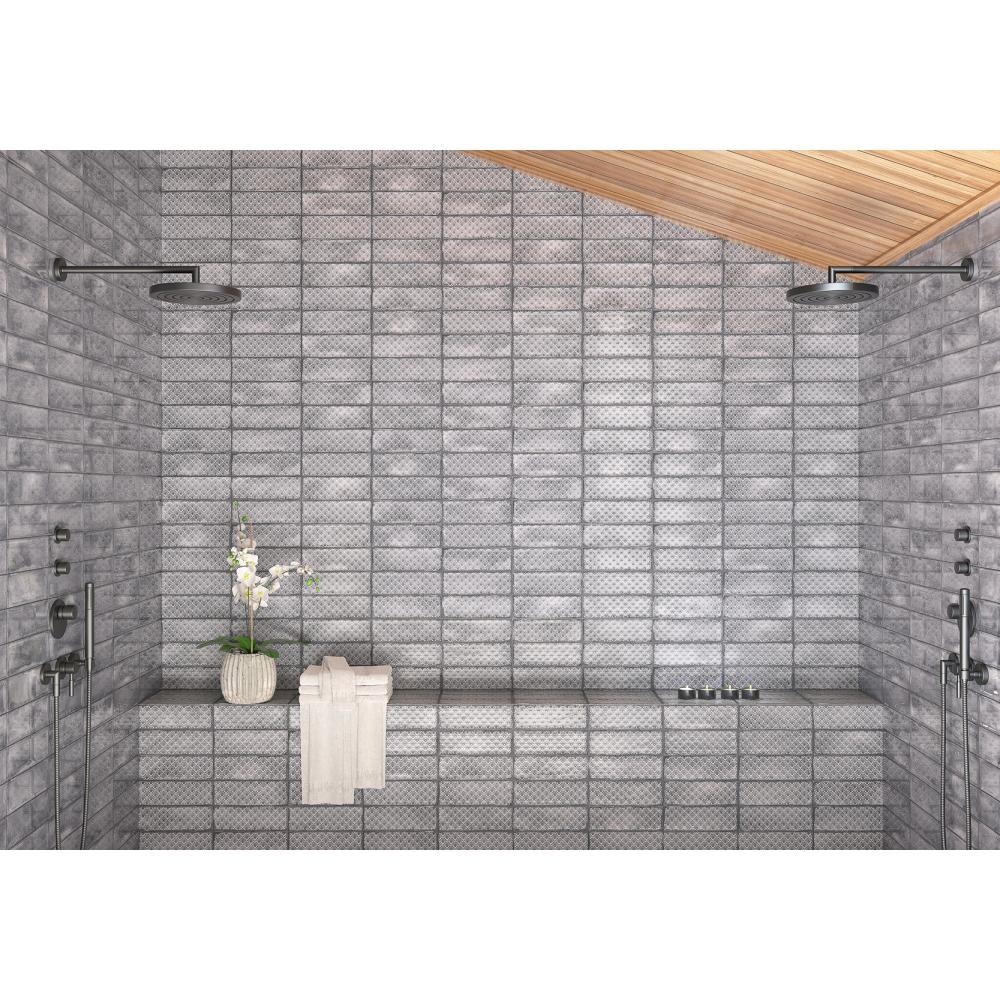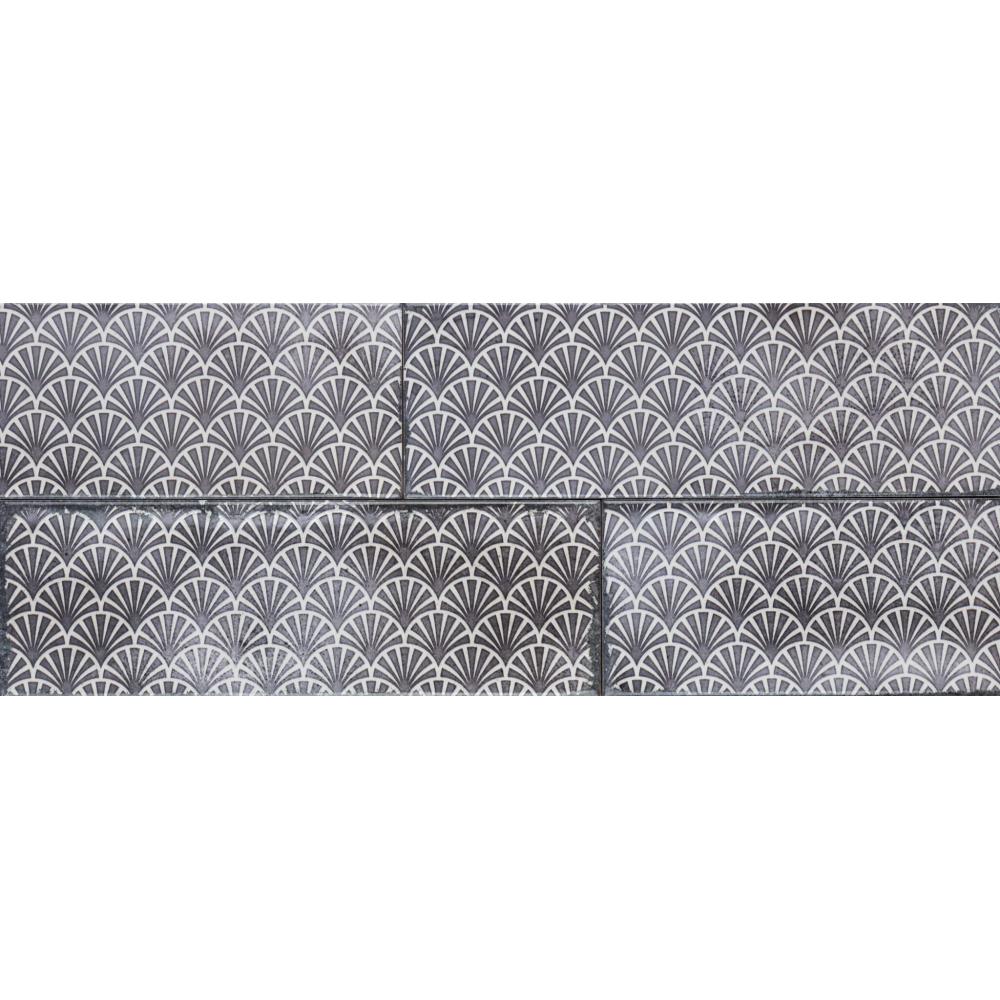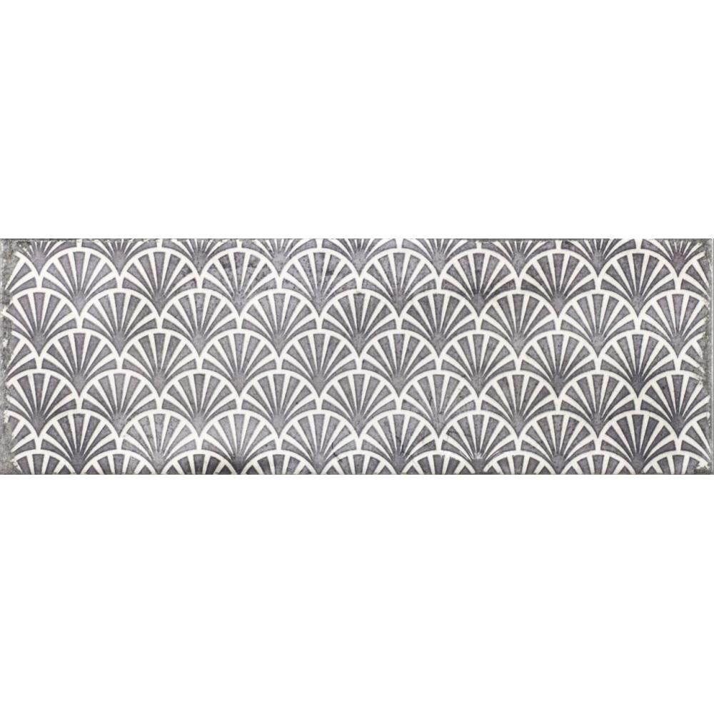 LK1 Art deco, gatsby hangulatú legyező mintás szürke dekor fali csempe, 10x30 cm