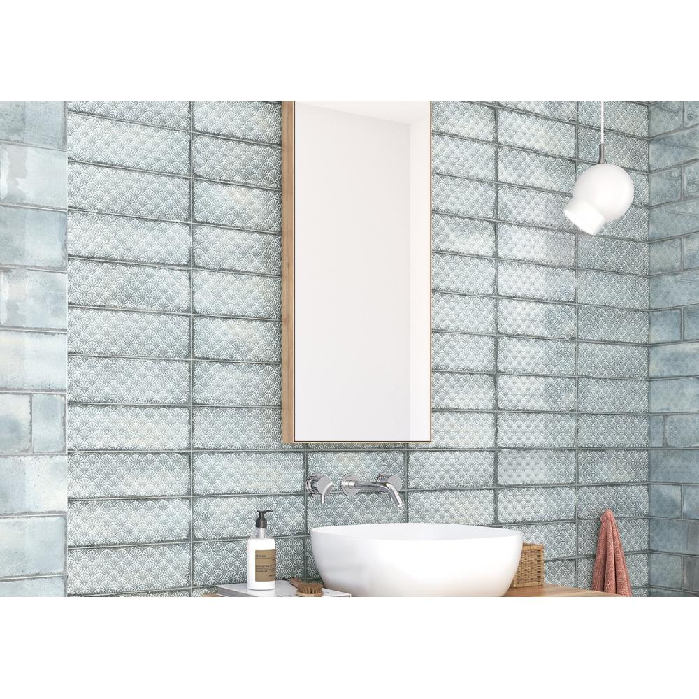 LK1 Art deco, gatsby hangulatú legyező mintás türkizzöld mintás dekor fali csempe, 10x30 cm