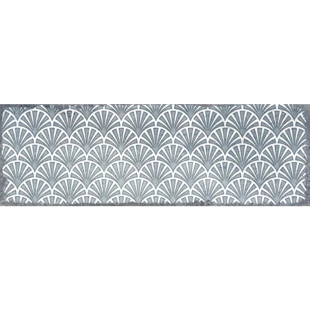 A minta egyértelműen a 20-as, 30-as évek Art Deco világát idézi a jellegzetes legyező (vagy pikkely) motívummal. Ez a minta egyszerre klasszikus és nagyon trendi a mai belsőépítészetben.