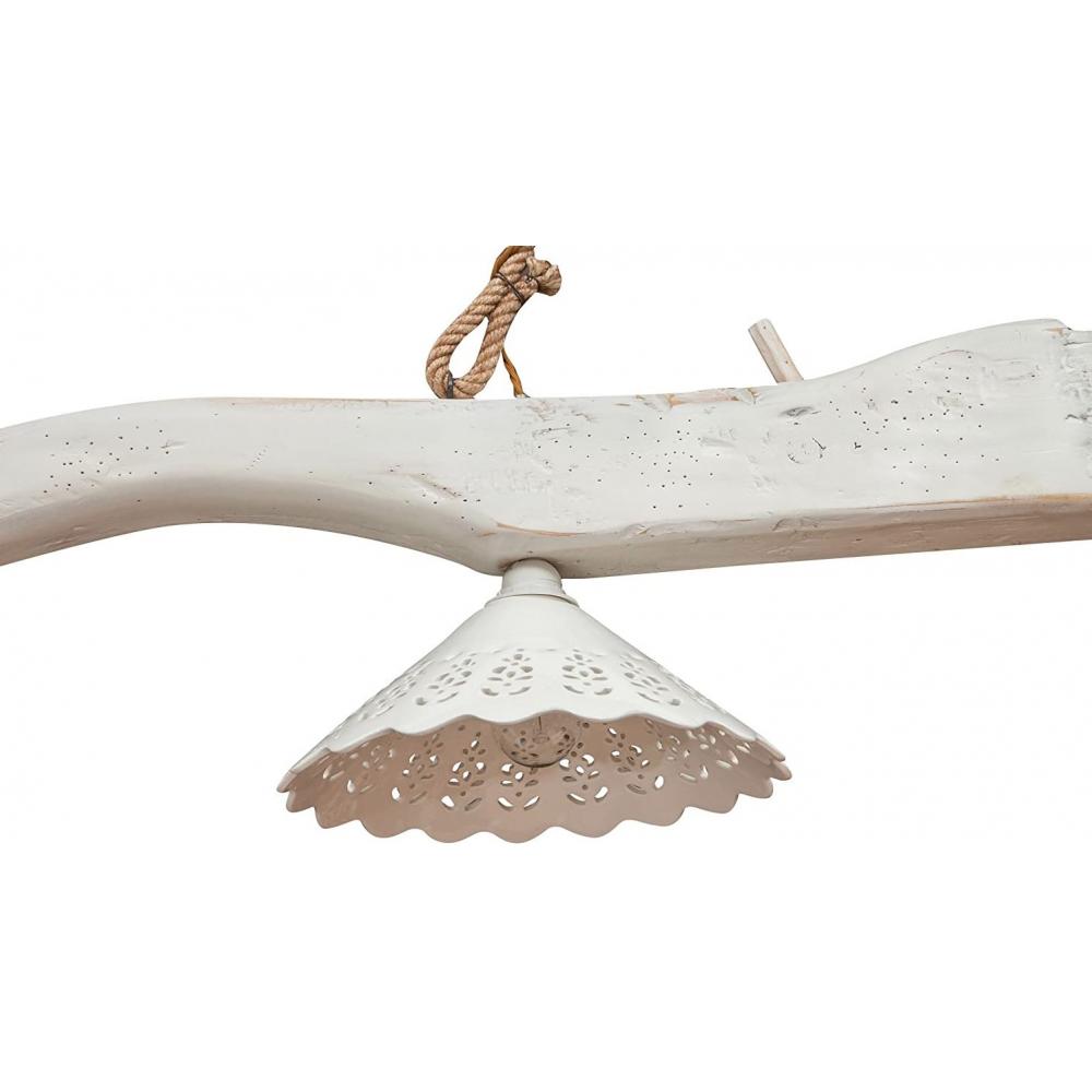 BISC Függeszték kerámia tányérral, rusztikus hársfa szerkezettel/ 160 cm/ fehér