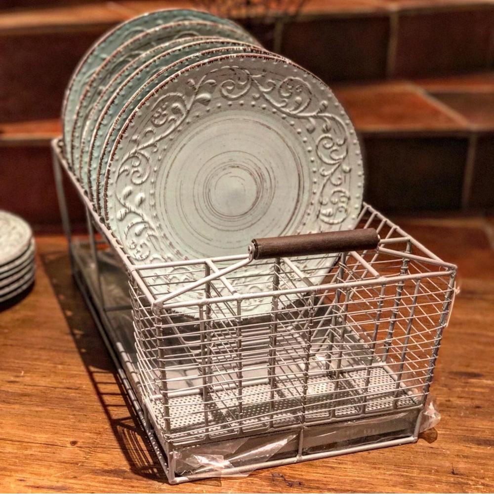 46 cm széles fém tálcás, fa fogantyús edényszáritó.