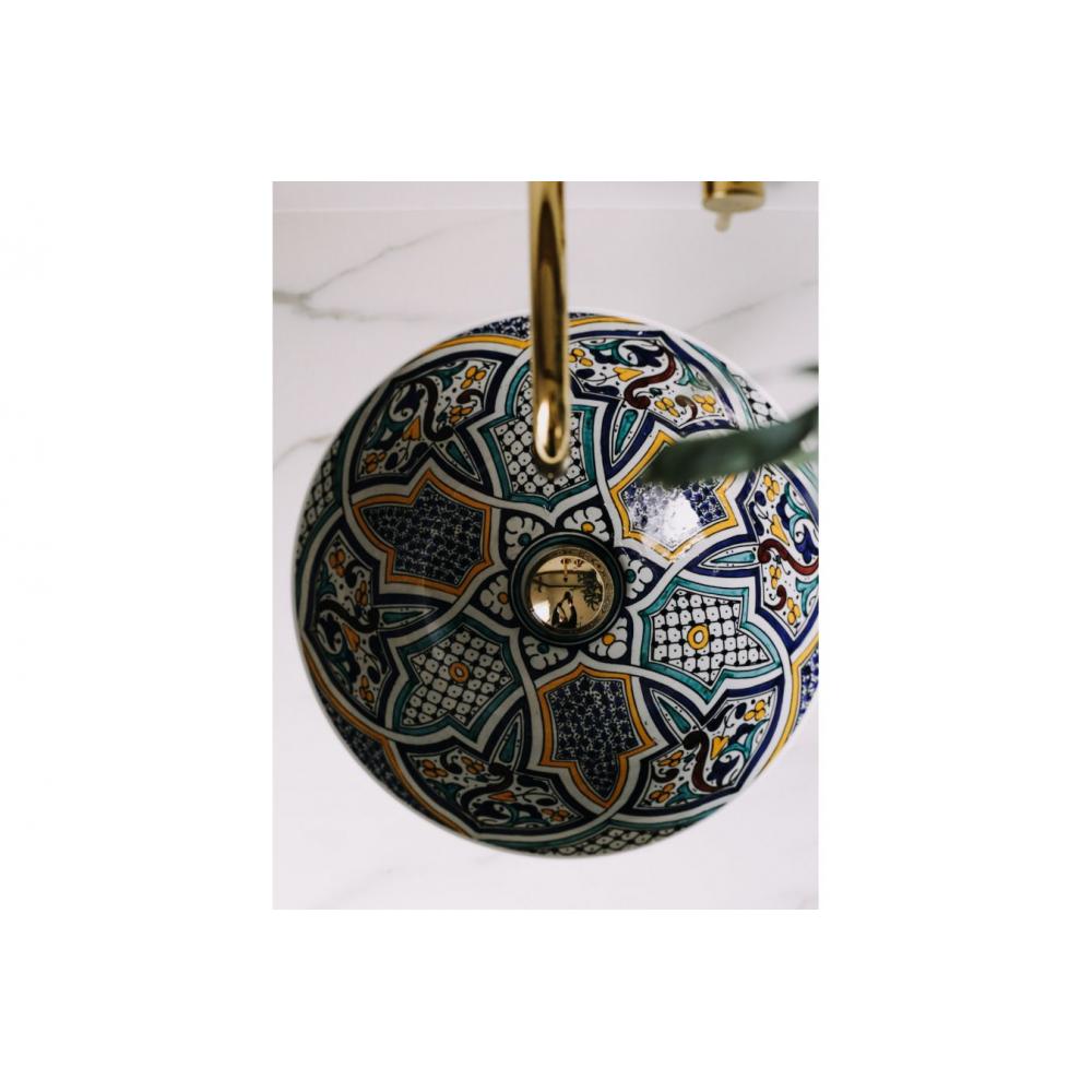 Minőségi, kézzel felületkezelt kerámia mosdótál. Tradicionális marokkói mintái magával ragadóak.
