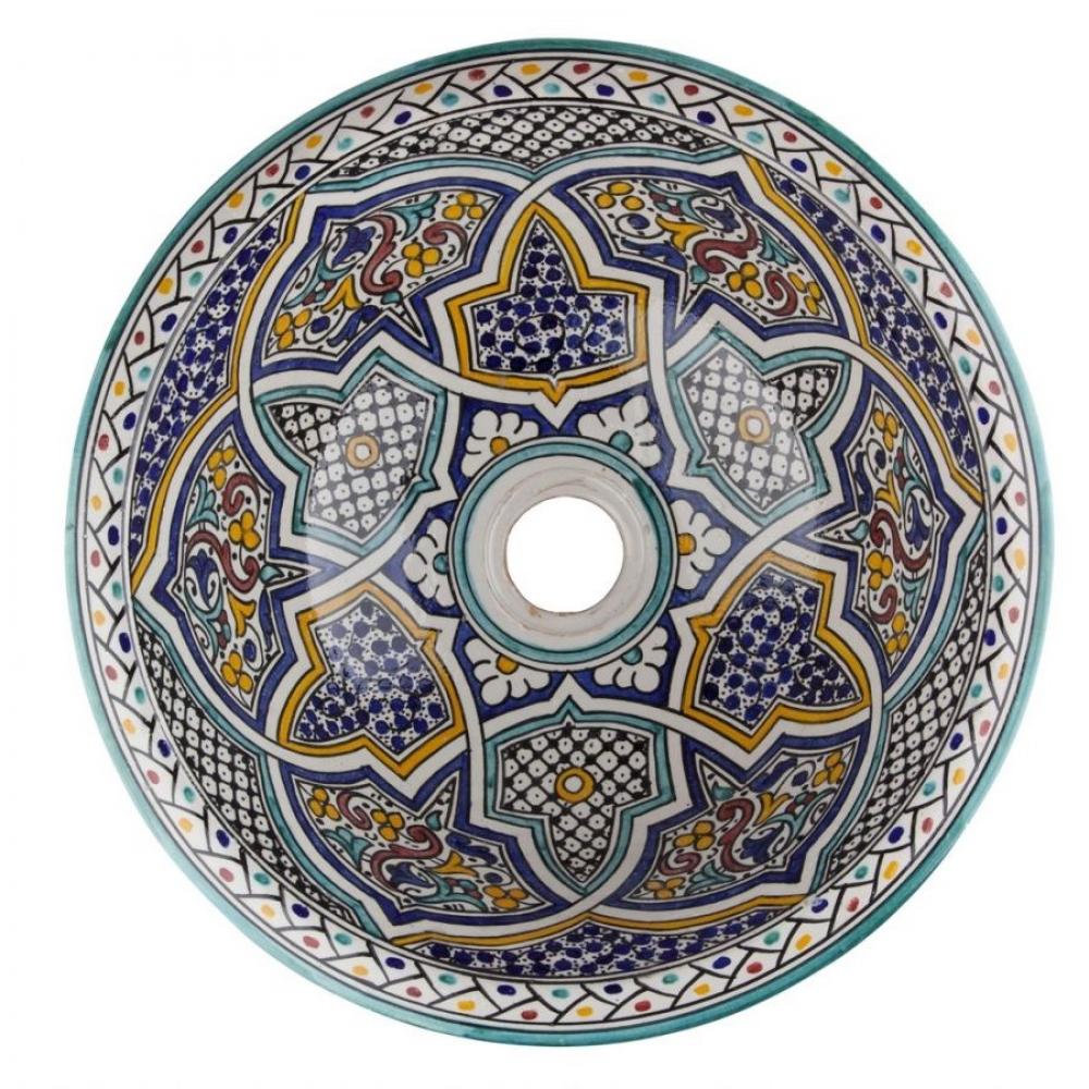CM Marokkói mintás mosdótál, kézi festéssel, 40 cm átmérővel