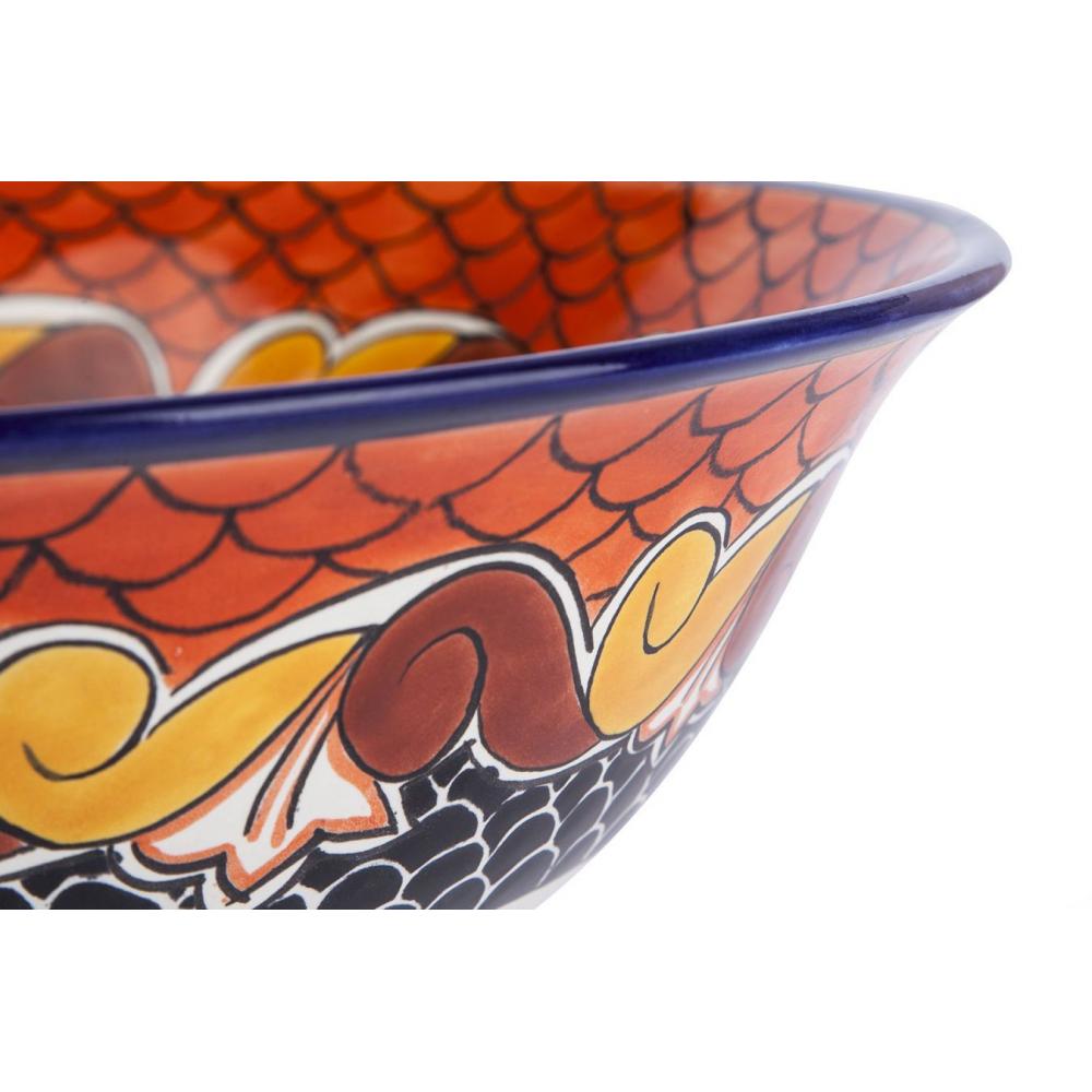 CM Szines, virágos, kézzel festett mexikói kerámia mosdótál, 40,5 cm átm.