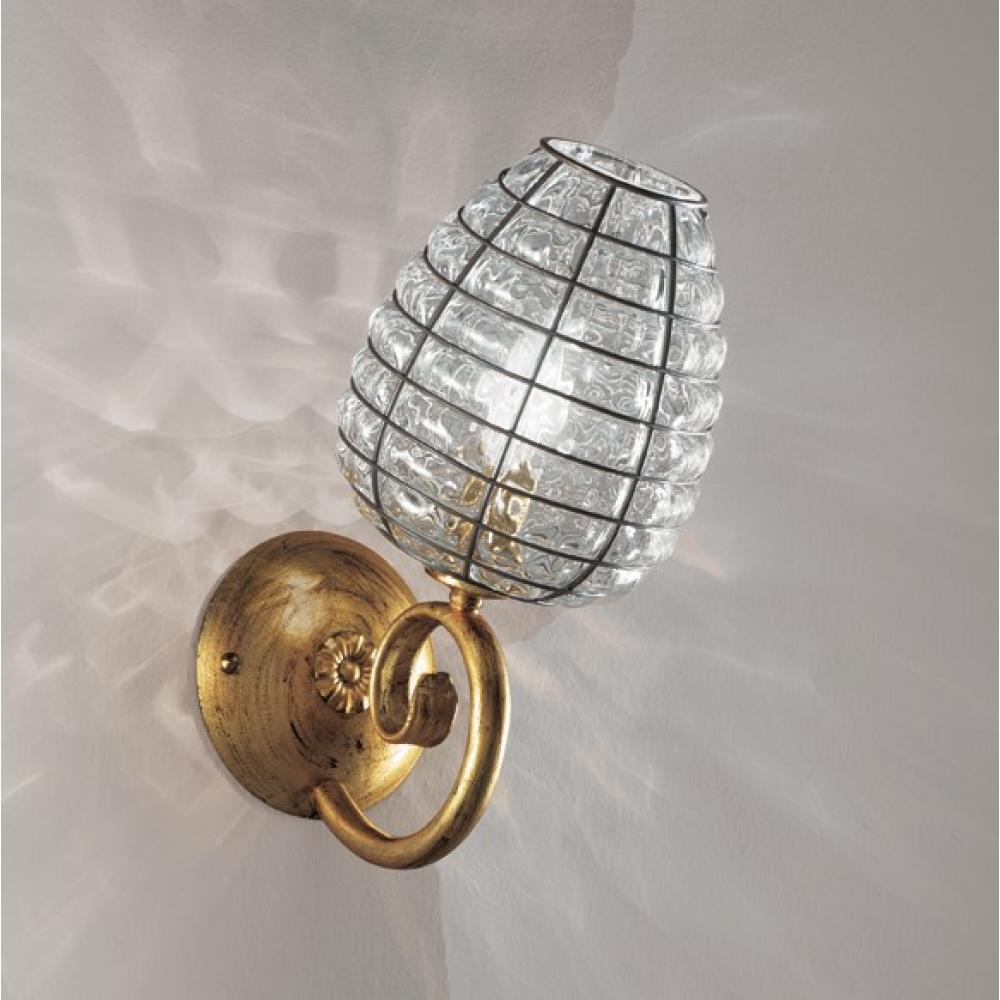 SR Klasszikus stilusú, arany szinű muránói szájjal fújt üveg falikar lámpa