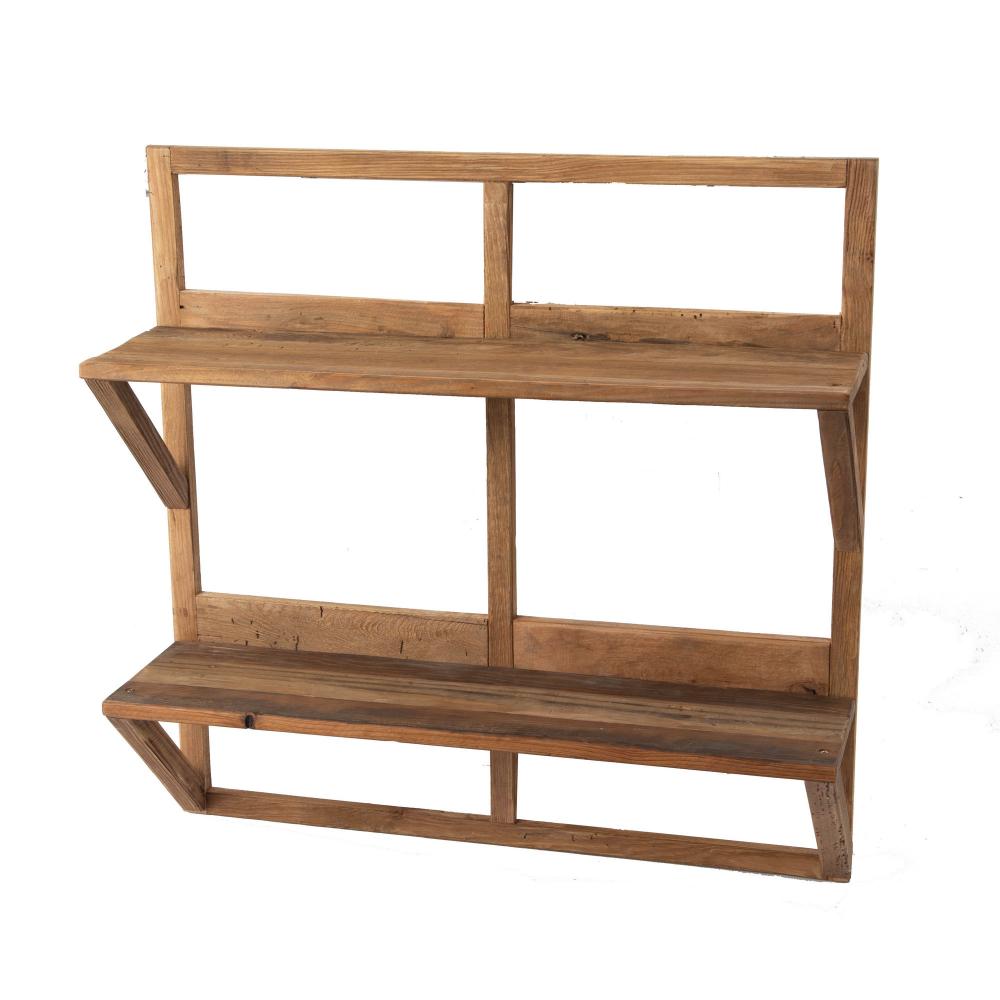 CAD Rusztikus fali polc, régi fából, két polccal, akasztóval, KÉSZLETEN
