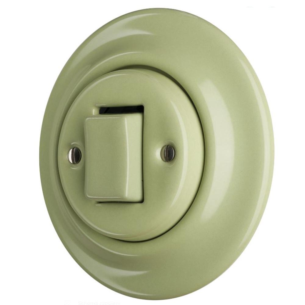 Újratervezett retro villanykapcsoló zöldes szürke szinben. Hagyományos porcelánból készült. Porálló.