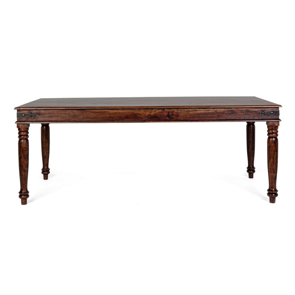 BZ Klasszikus tömör akácfa étkezőasztal, vas pántokkal, 200x100 cm