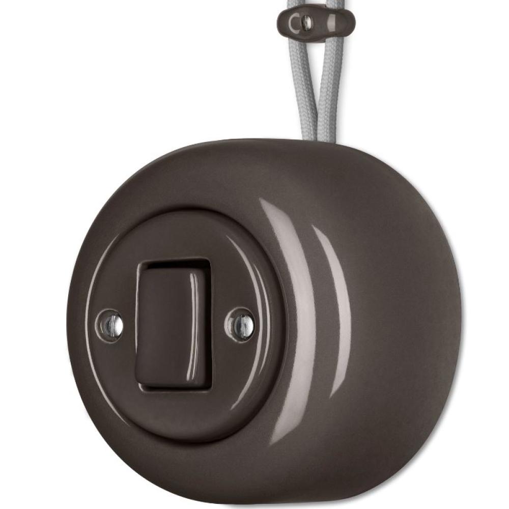 KP Falon kívüli retro, gesztenyebarna szinű porcelán villanykapcsoló