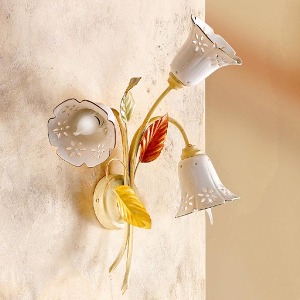 CB Polgári stilusú, festett levél mintás falikar, lyukacsos kerámia búrával