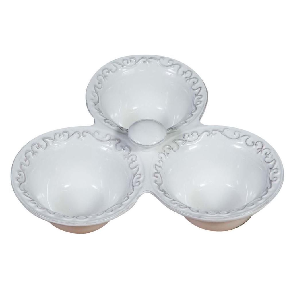 BIS Három részes, mintás kerámia tálka / szószos, chips-es, mogyorós