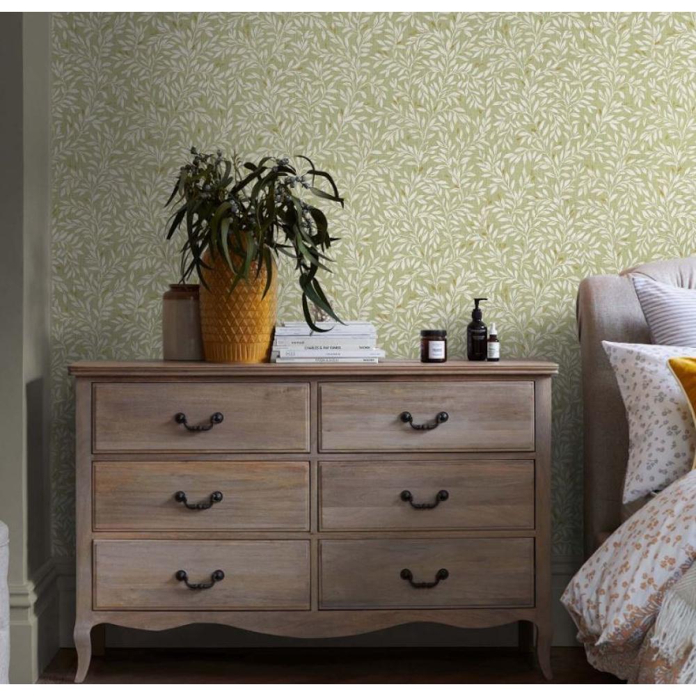 PAN Vinatge jellegű,apró, bézs levél mintás, világoszöld alapú tapéta