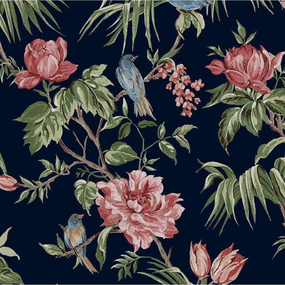 PAN Elegáns,színes virág és madár mintás tapéta, sötétkék alappal / 0.52 x 10 m