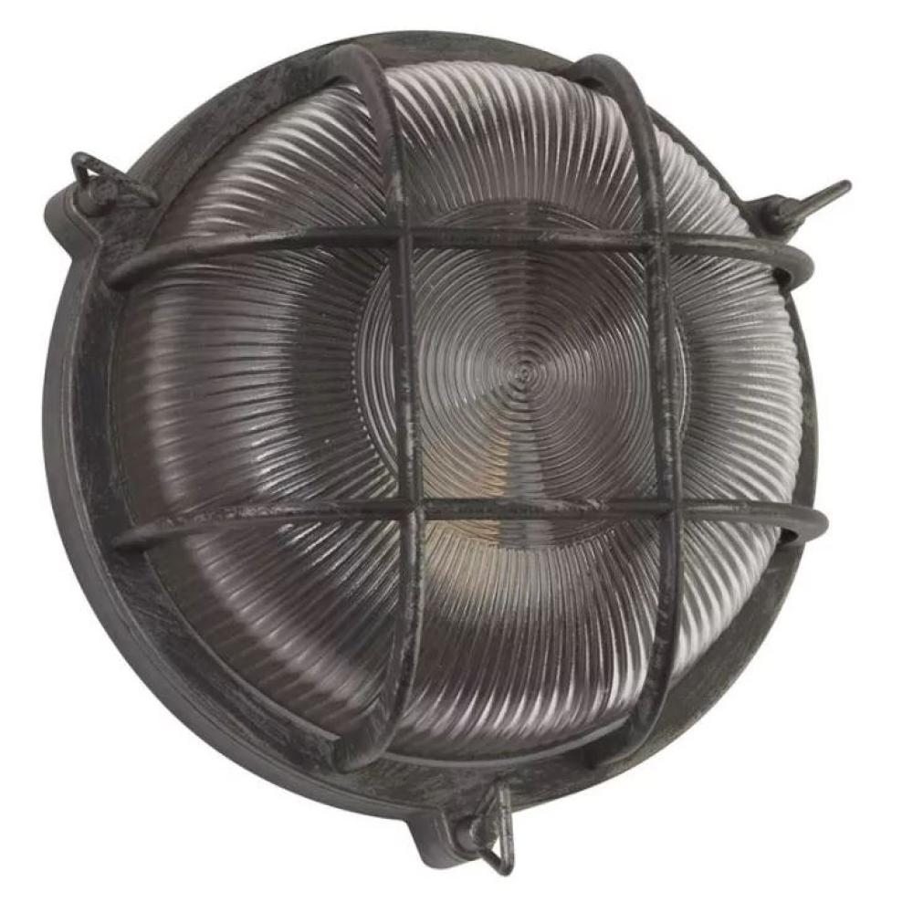 Kültéri rusztikus, antikolt felületű, IP44-es vizálló kerti hajólámpa, átlátszó üveggel.
