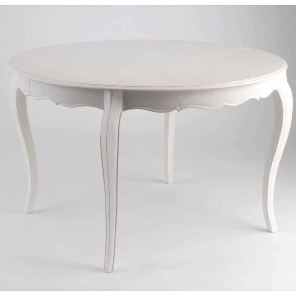 Klasszikus stilusú, hosszabbitható 120x120 cm-es kerek klasszikus fehér étkezőasztal, 40 cm-es középső toldással.
