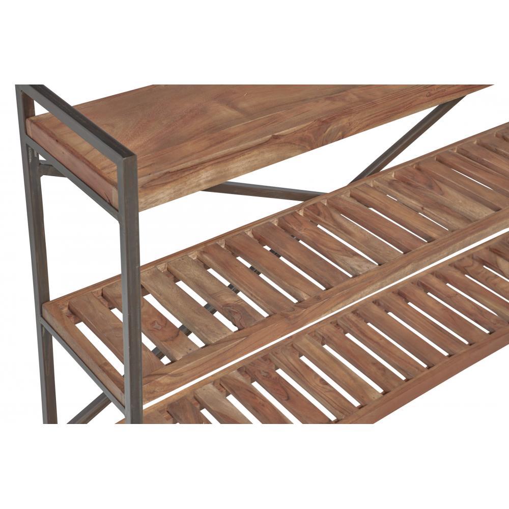 Vitnage stilusú polcos szekrény, szürke fém bútorvázzal és akácfa polcokkal.