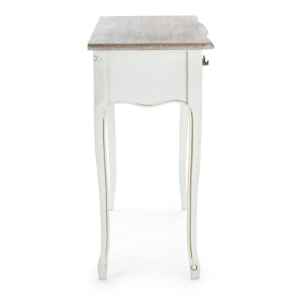 BZ Klasszikus stilusú fehér konzolasztal, 90 cm szélességgel, fém fogantyúkkal
