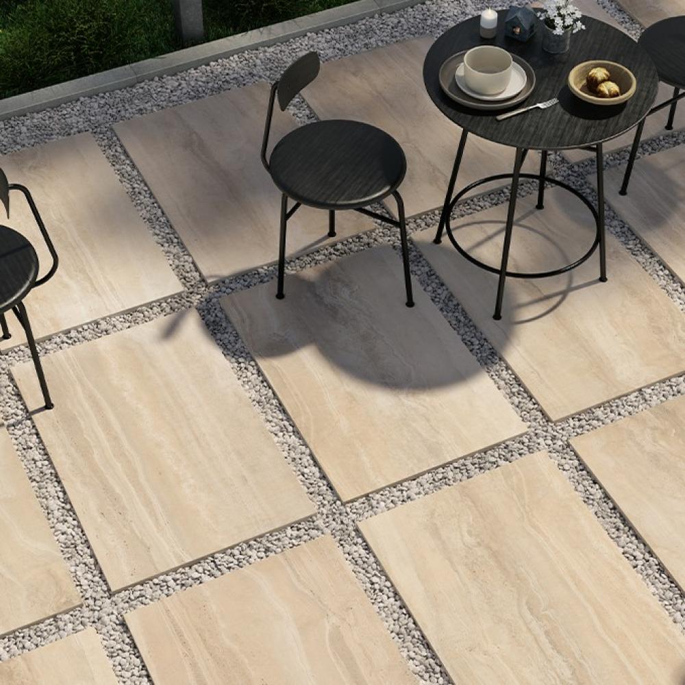 CO Kőhatású világos, fagyálló, R11-es csúszásmentes, mészkő hatású kültéri terasz burkolat, 60,4X90,6 cm