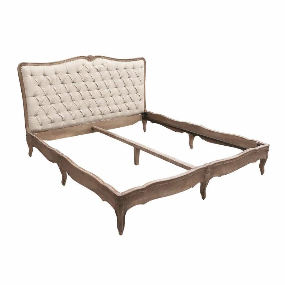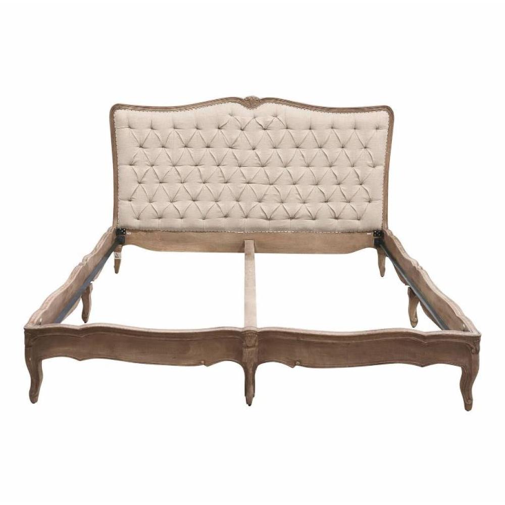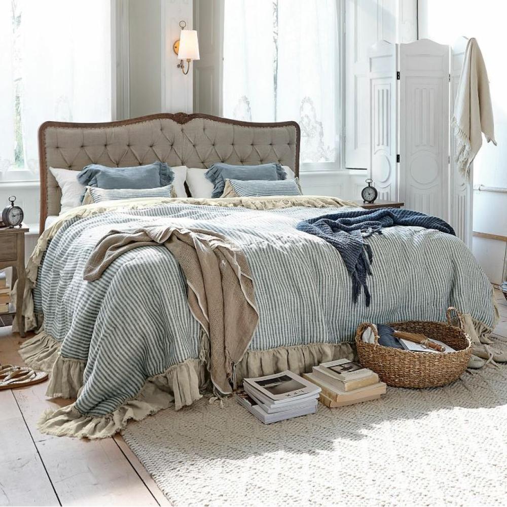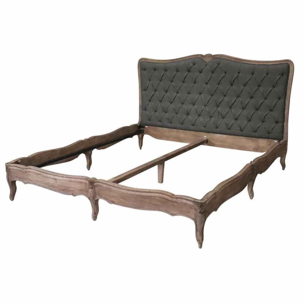 LB Igényes country ágykeret tűzött, natúr lenvászon szövettel készített fejvéggel, faragott mangófa lábakkal / 180x200-as matrachoz