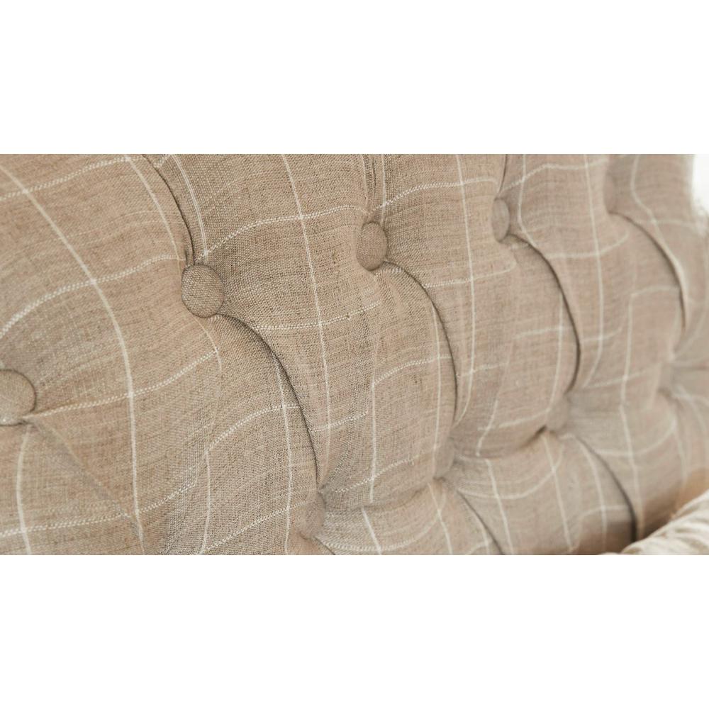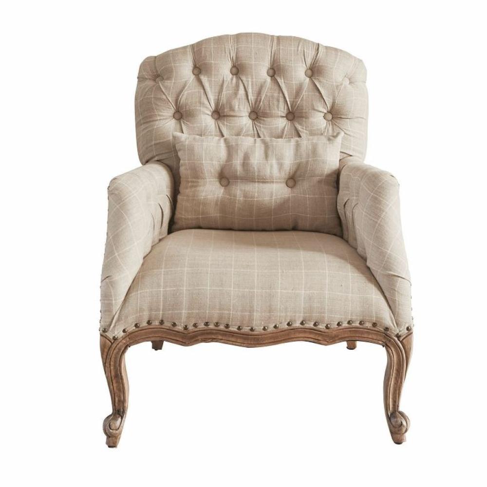 LB Vidéki, elegáns, cottage stilusú kockás len fotel, tűzött háttámlával, mangófa lábakkal / 72,5x81x 95,5 cm