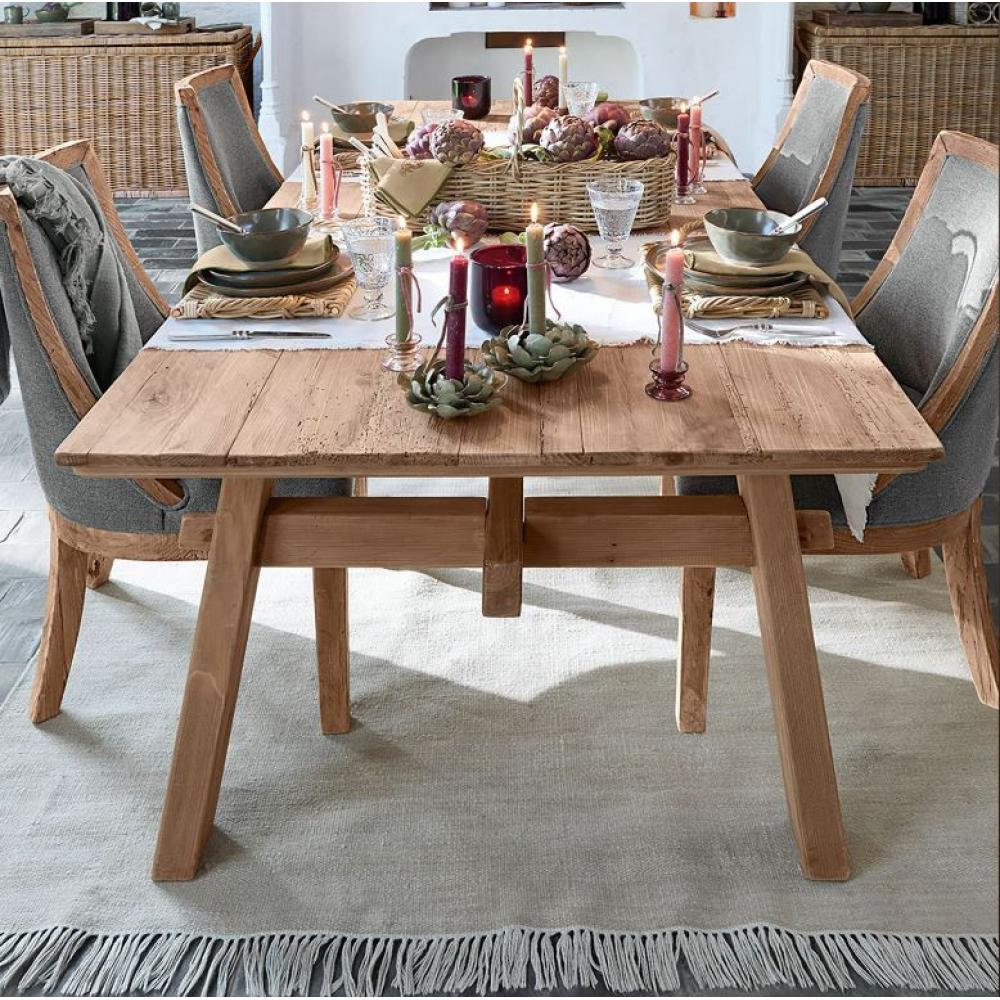 Ez a nagy asztal tökéletesen illeszkedik a vidéki stílushoz, és elegendő helyet biztosít a családdal és a barátokkal közösen elfogyasztott étkezésekhez.