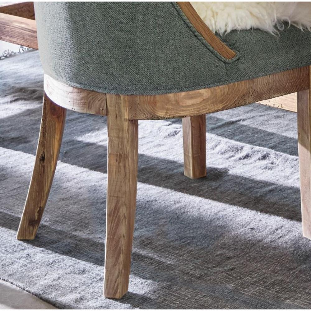 Az újrahasznosított fenyőből készült masszív szerkezet lenyűgöző felületeket tartalmaz, amelyeket a finom felületkezelés még jobban kiemel. Az exkluzív karaktert a régi bontott fa hibáiból adódó egyenetlenségek hangsúlyozzák, amelyek tökéletes kontrasztot alkotnak a bársony jellegű kárpit eleganciájával. A háttámla íves formája ülés közben is biztosítja a helyes testtartást.