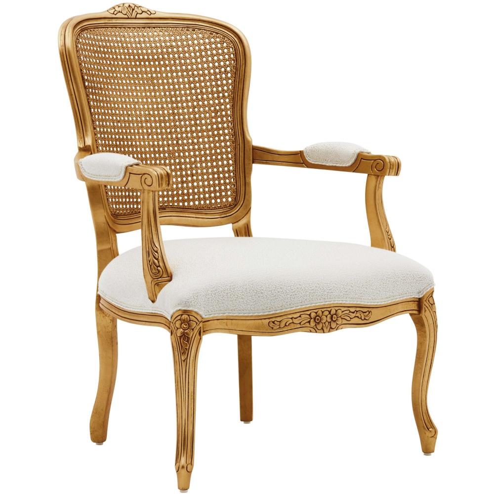 SVS Kárpitozott barokk arany karosszék, faragott lábakkal és nádazott háttámlával