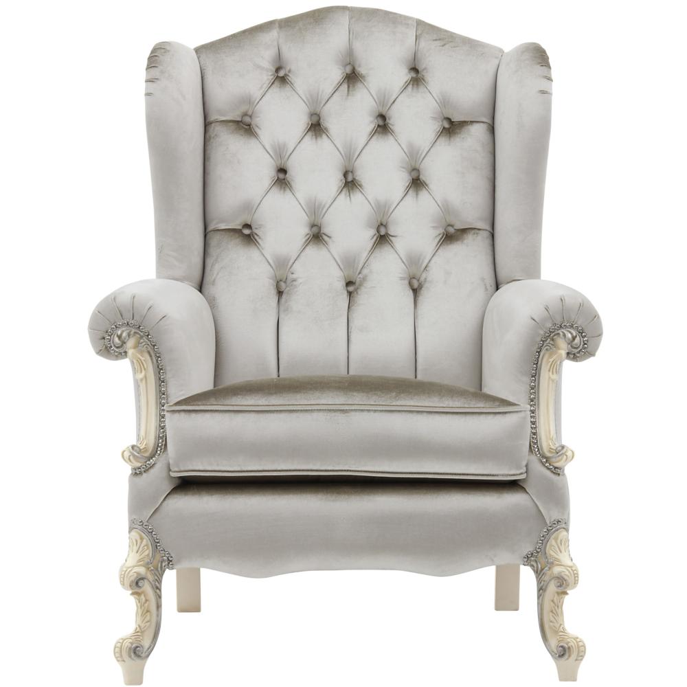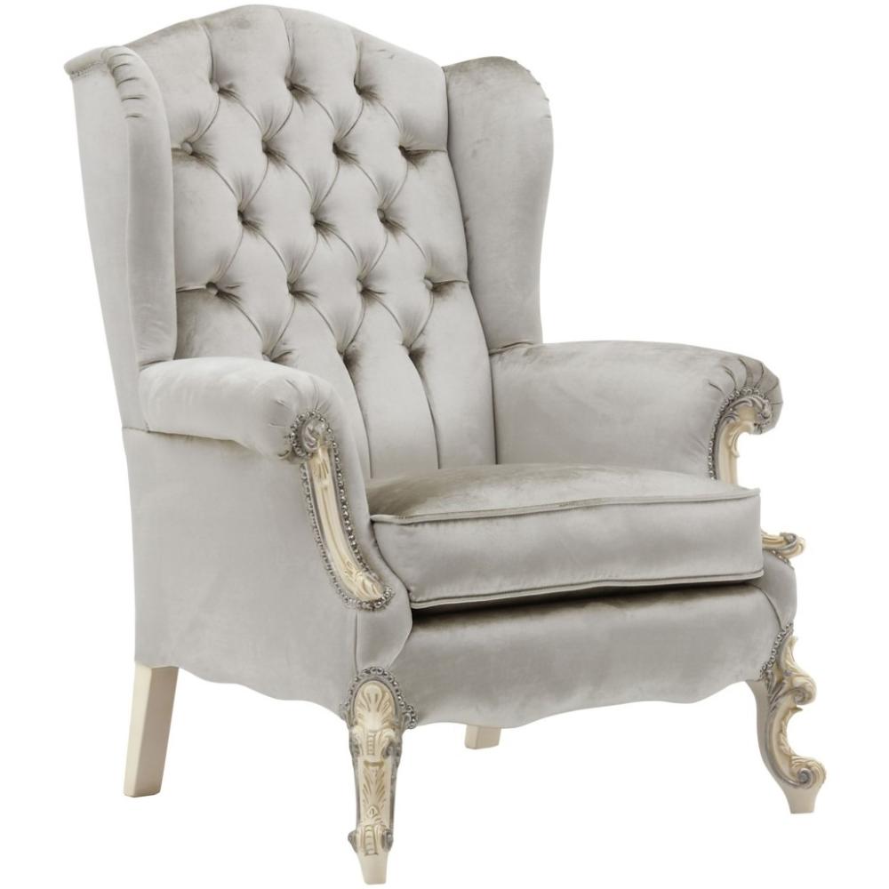 Klasszikus stílusú füles fotel különösen elegáns vonalakkal és kiválóan kidolgozott bükkfa szerkezettel. Sok kezi faragás gazdagítja mind a lábakat mind a karfákat. Kárpitozott hevederrel és kiváló minőségű habbal mely pihentető és kényelmes ülőpziciót tesz lehetővé. Ajánljuk nemcsak elegáns villákba, kastélyokba, felső kategóriás polgári szalonokba, hanem nappaliba vagy akár olvasófotelként egy nyugodt sarokba. A bútor Olaszországban készül, felső kategóriás, kézzel készült termék!